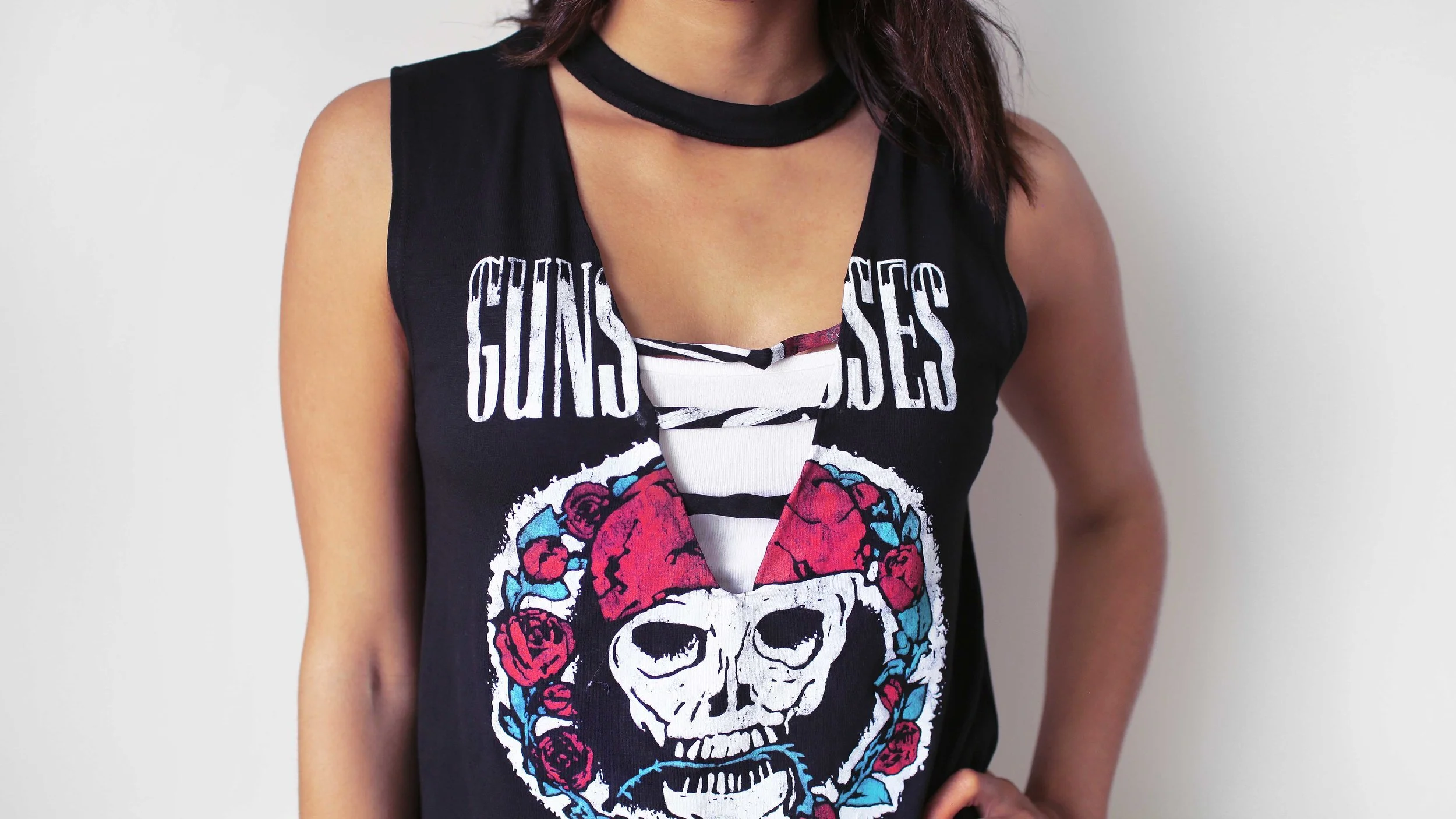This vintage tee upcycle is the perfect combo of the ripped tee look and the choker look, all in one!