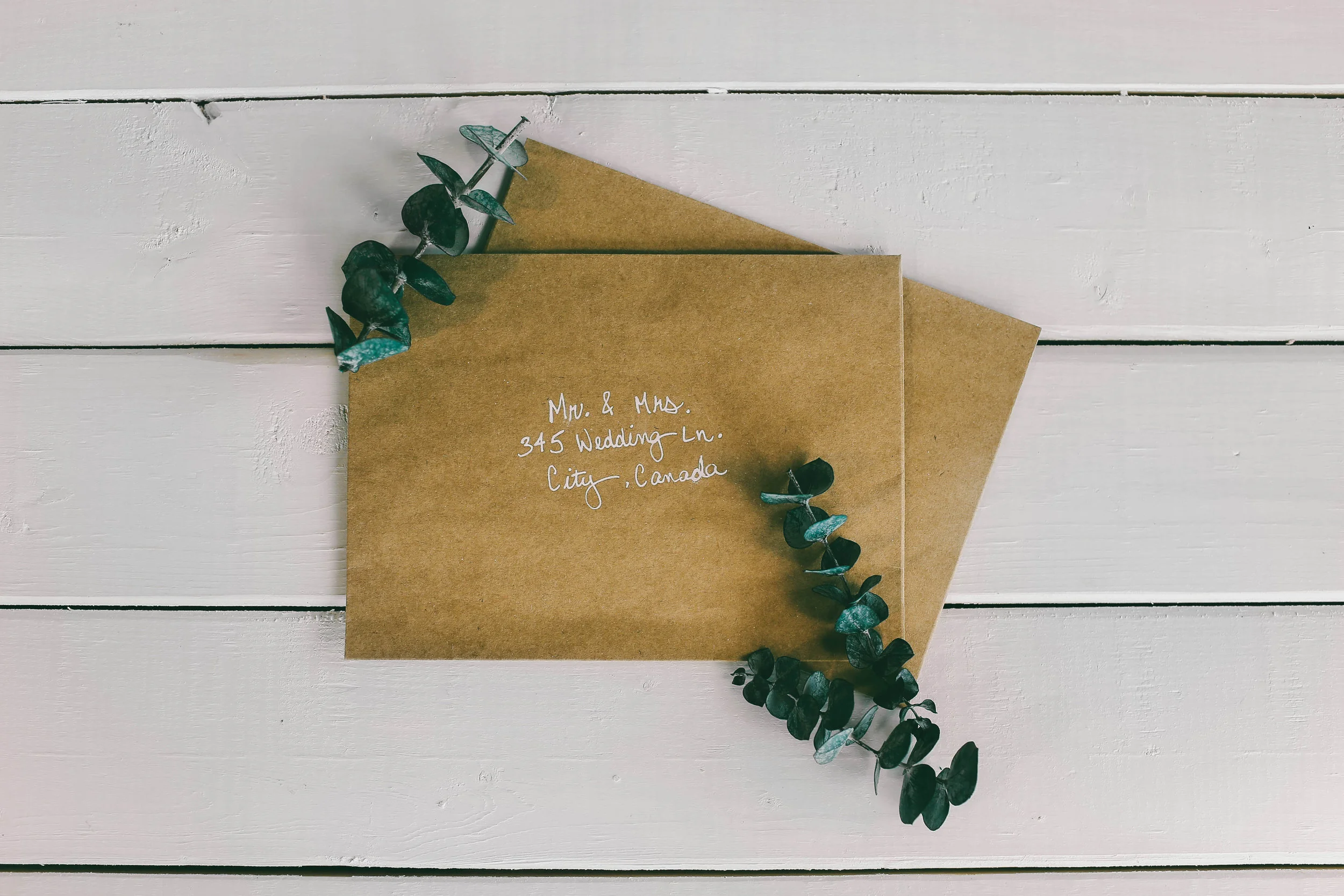 Finally, I wrote the recipient’s address and names on the front of the envelope using a white gel pen and placed the invitation inside!