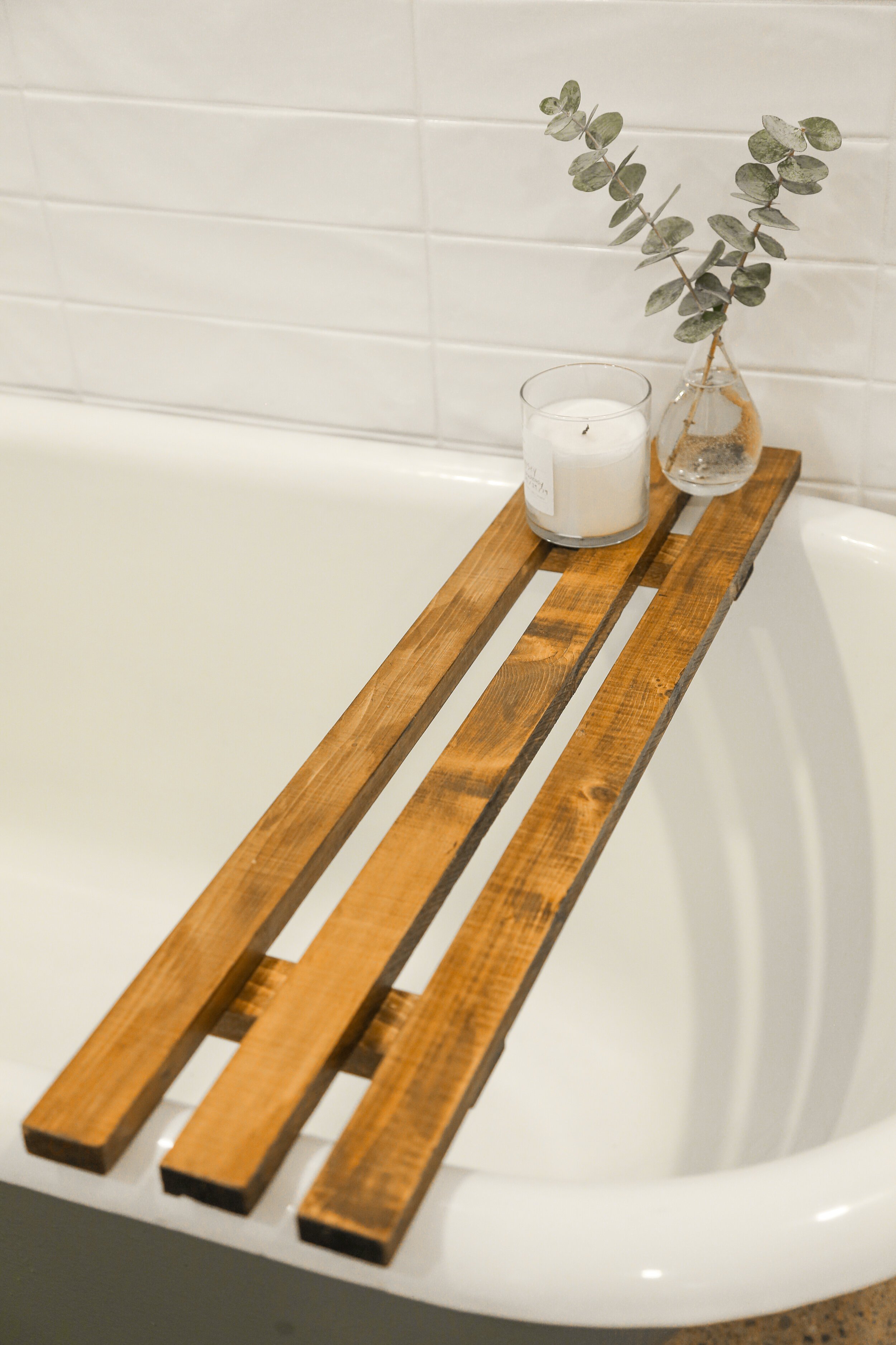 All that was left to do after the shower glass was installed was some finishing touches like adding plants, DIYing a bathtub tray and shower organizer, putting up towel hooks and hanging dried eucalyptus in the shower. Check out my completely renovated dream spa basement bathroom!