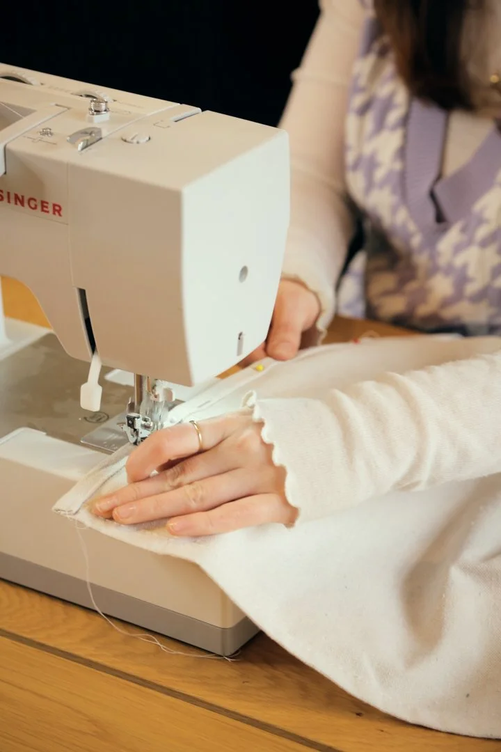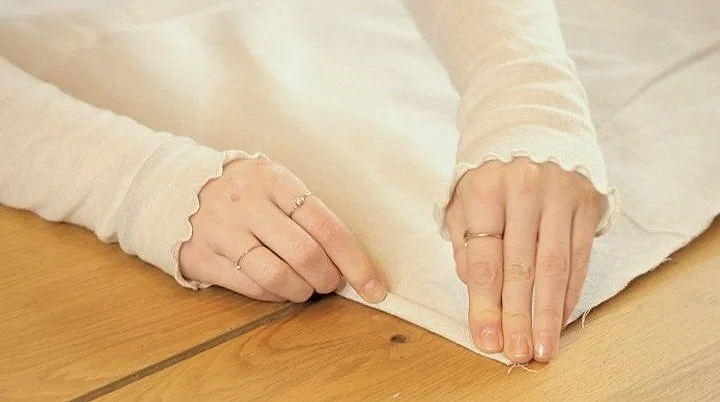 Fold and hem the bottom top side of each pocket panel to create a clean finish. Pin the panels onto the main canvas, ensuring they are evenly spaced and aligned. While pinning make sure to fold the bottom edge to create a clean hem.