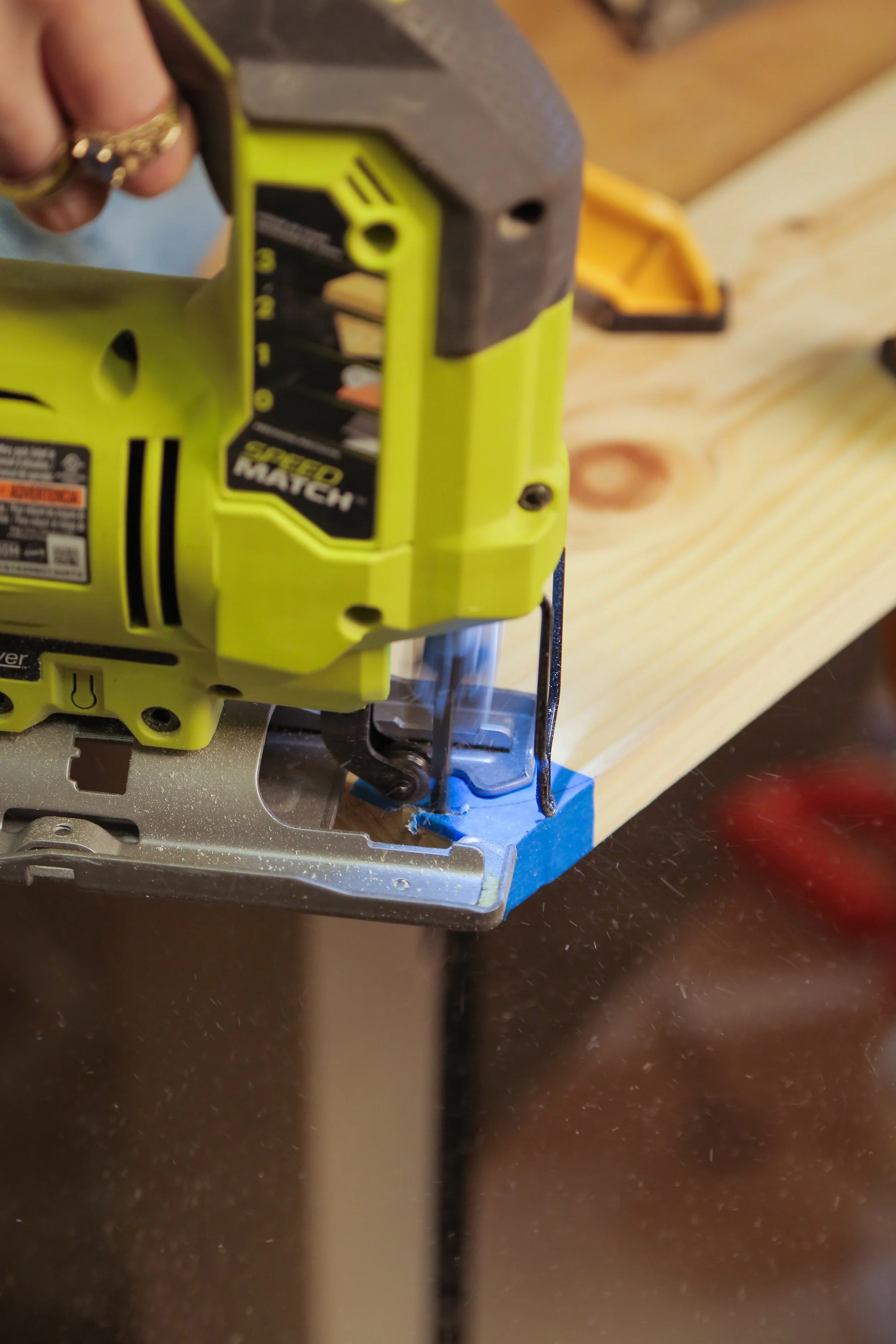 I then went to the hardware store and picked up a piece of knotty pine. I cut out two 40” long pieces and I rounded out the corners by cutting them with my jigsaw. I then grabbed my 120 grit power sander and sanding all the surfaces down to make it look smooth and softer.