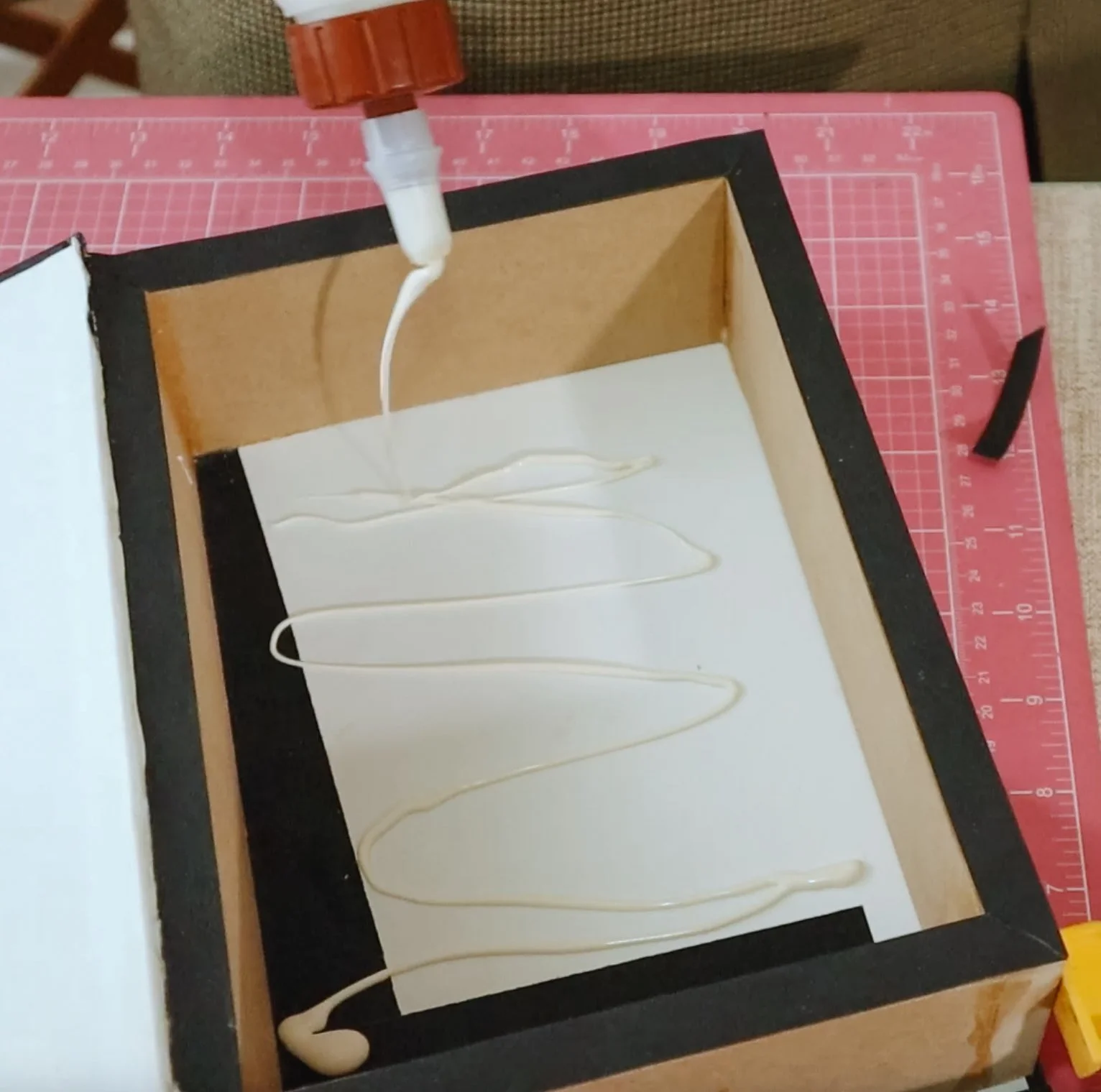 After that was done, I grabbed some thick white paper to cover the outside to resemble pages of the book.